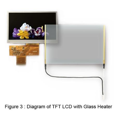 圣柏林提供厚度從0.4毫米到1.1毫米不等的玻璃加熱器,它可以輕松地連接到我們的TFT LCD模塊和IPCT(PCAP)。除了安裝方便之外,它還經過專門設計,可確保為客戶提供最佳質量。使用連接器并提供穩定的電流來控制TFT LCD模塊。(圖3)