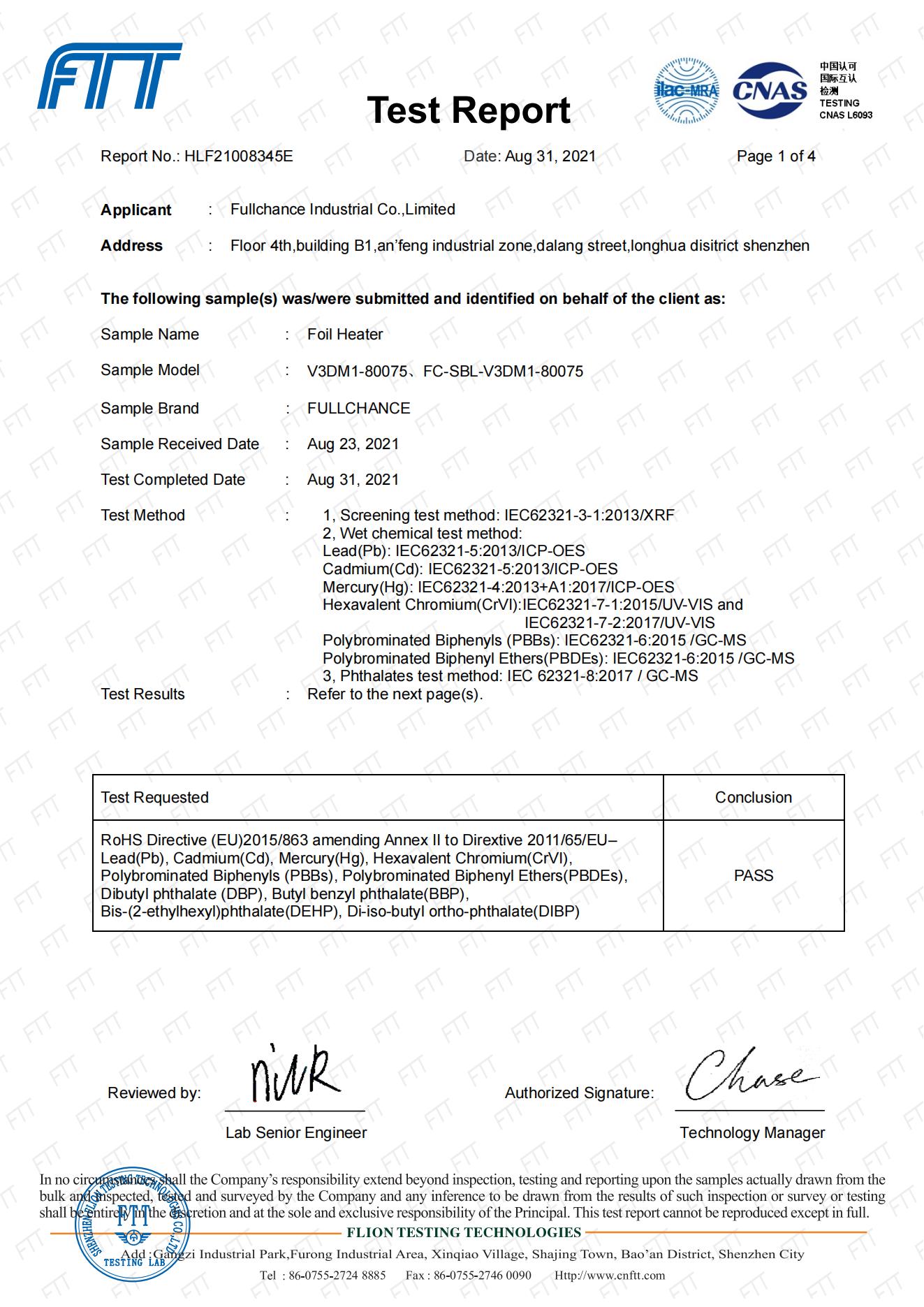 電熱片&電熱膜REACH 歐標認證